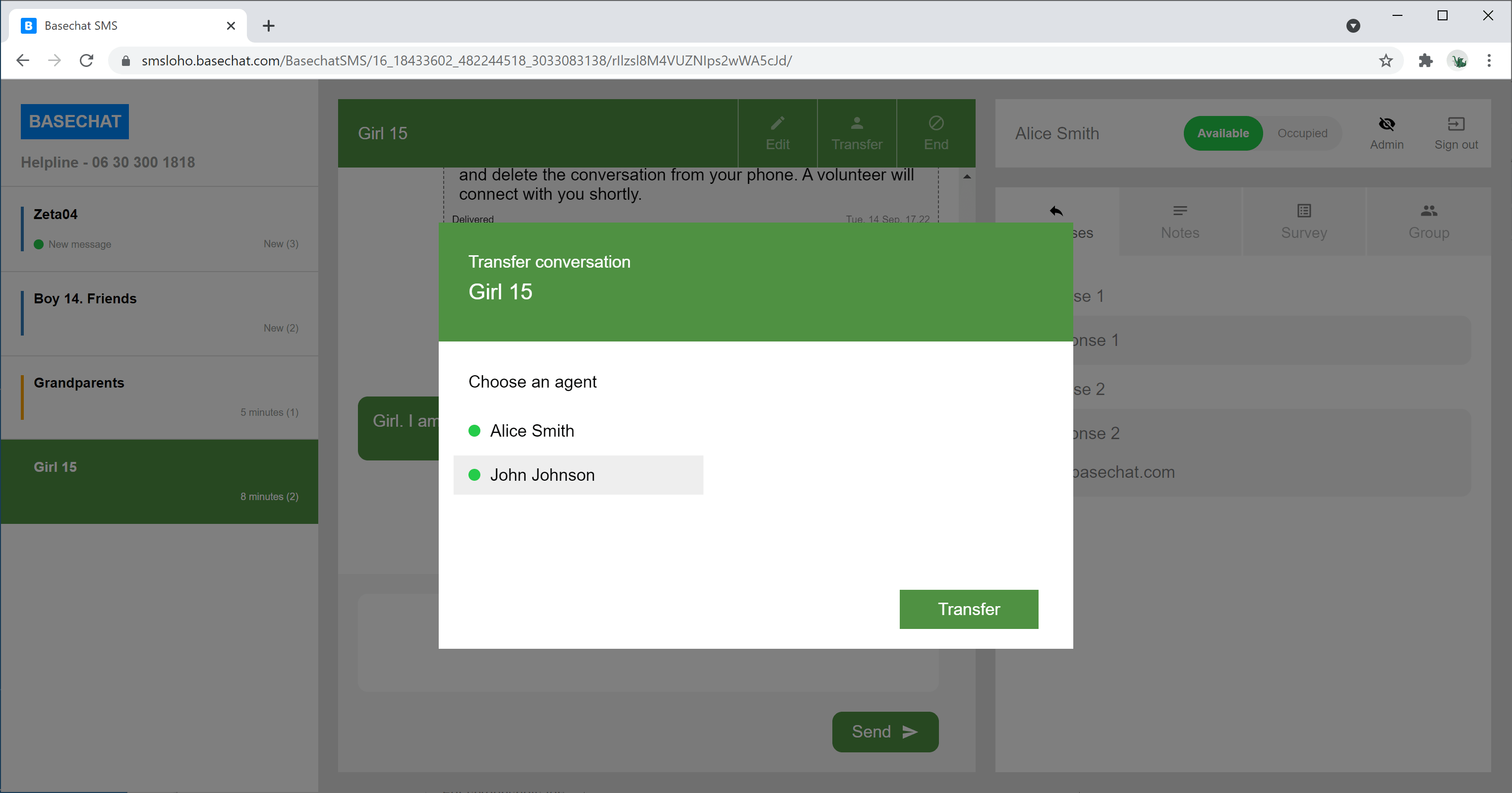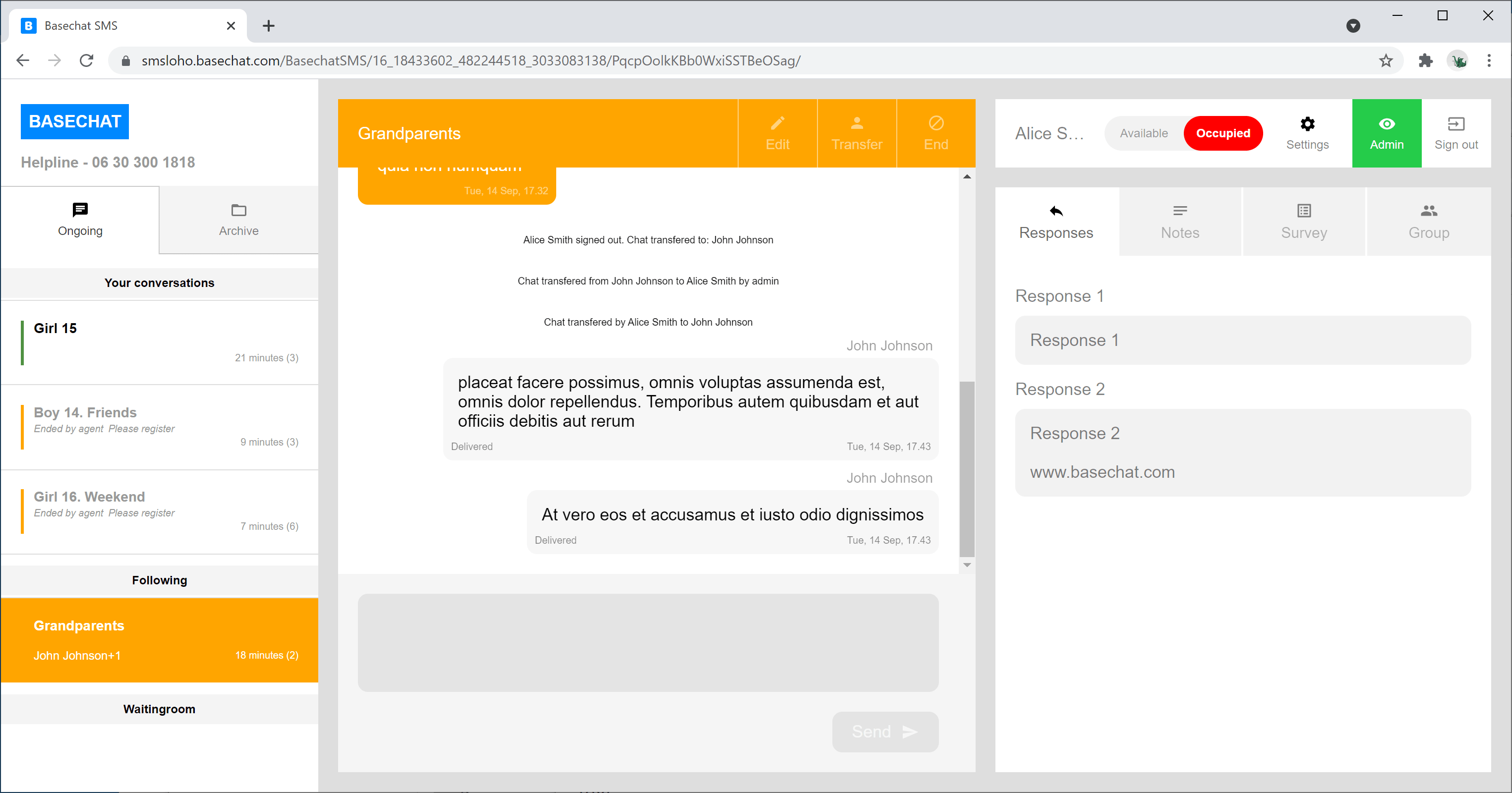 The counsellor can take notes, and label with preset subjects. Notes and subjects are always shown with the conversations when transferred or followed, or when the conversation is ended.
