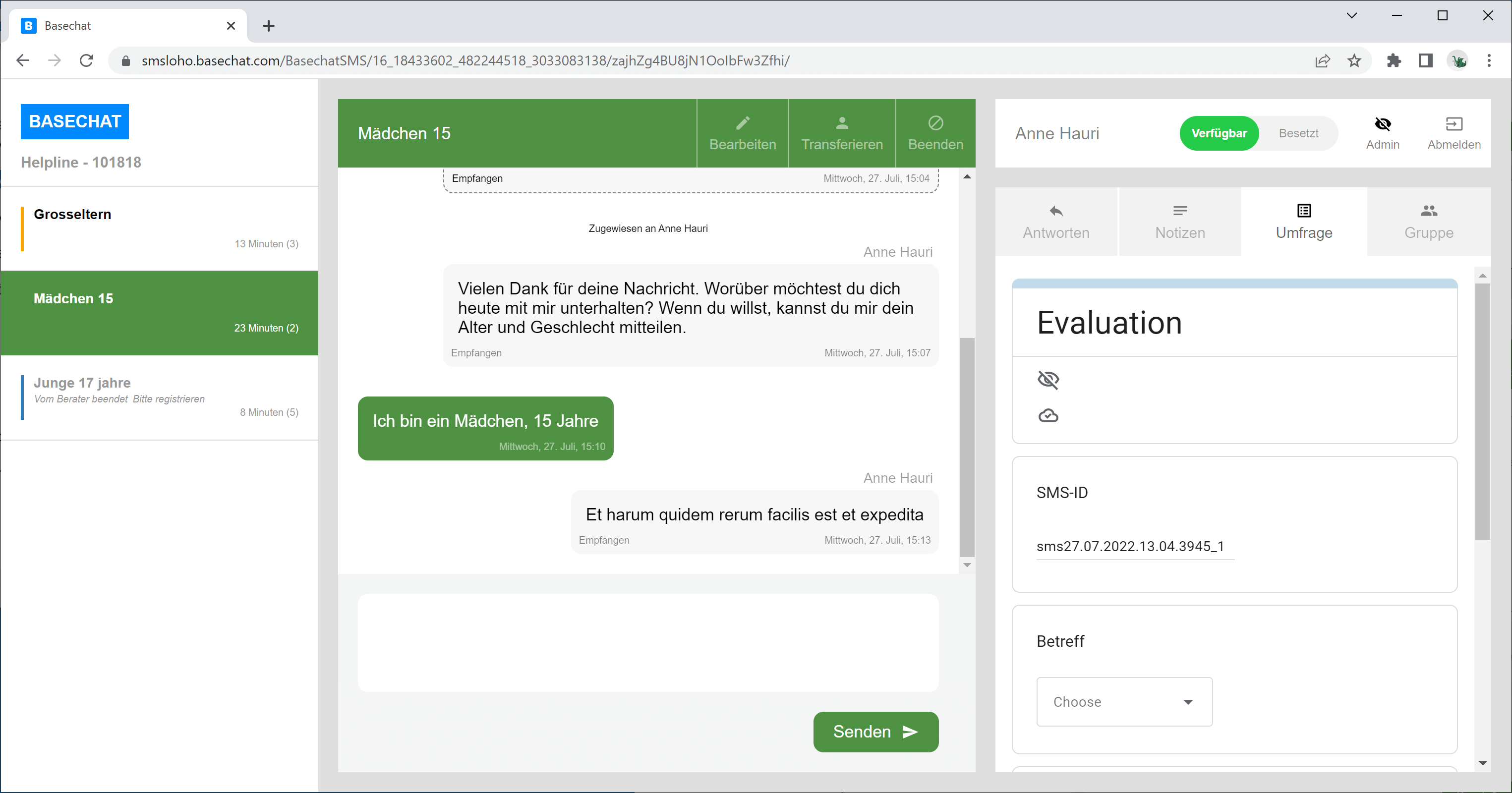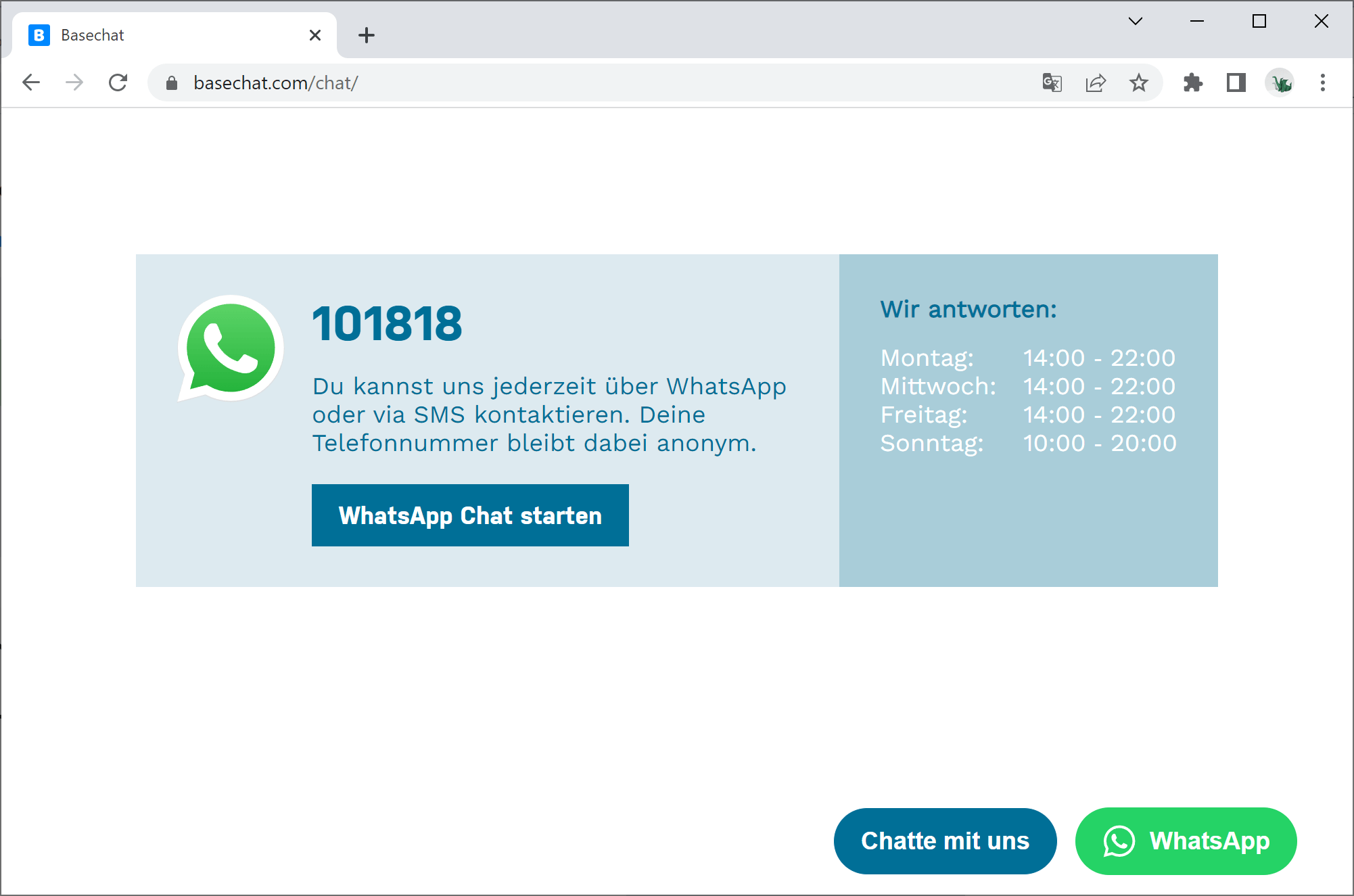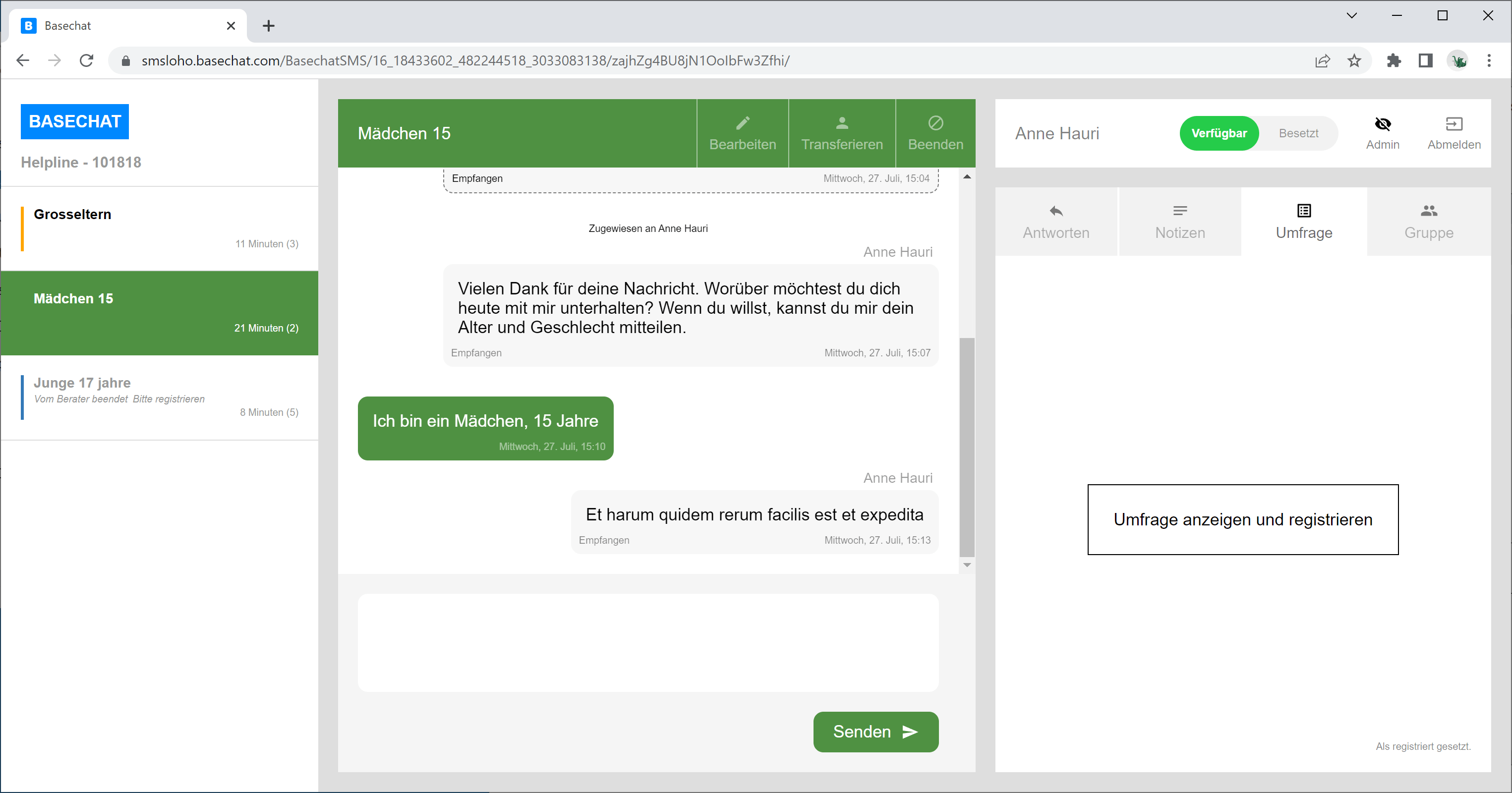 Ein Nutzer kontaktiert die Helpline über SMS, WhatsApp oder einen ähnlichen Kanal.