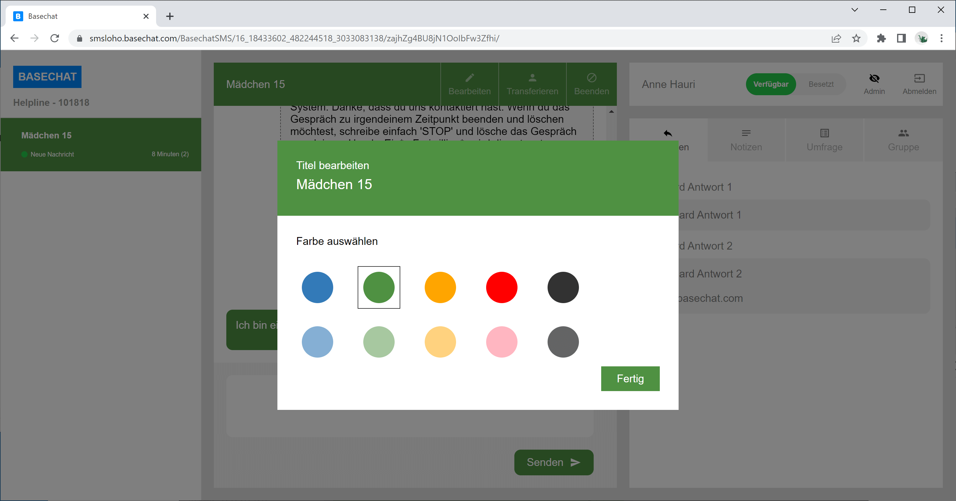 Der Berater kann der Unterhaltung einen Titel und eine Farbe geben.