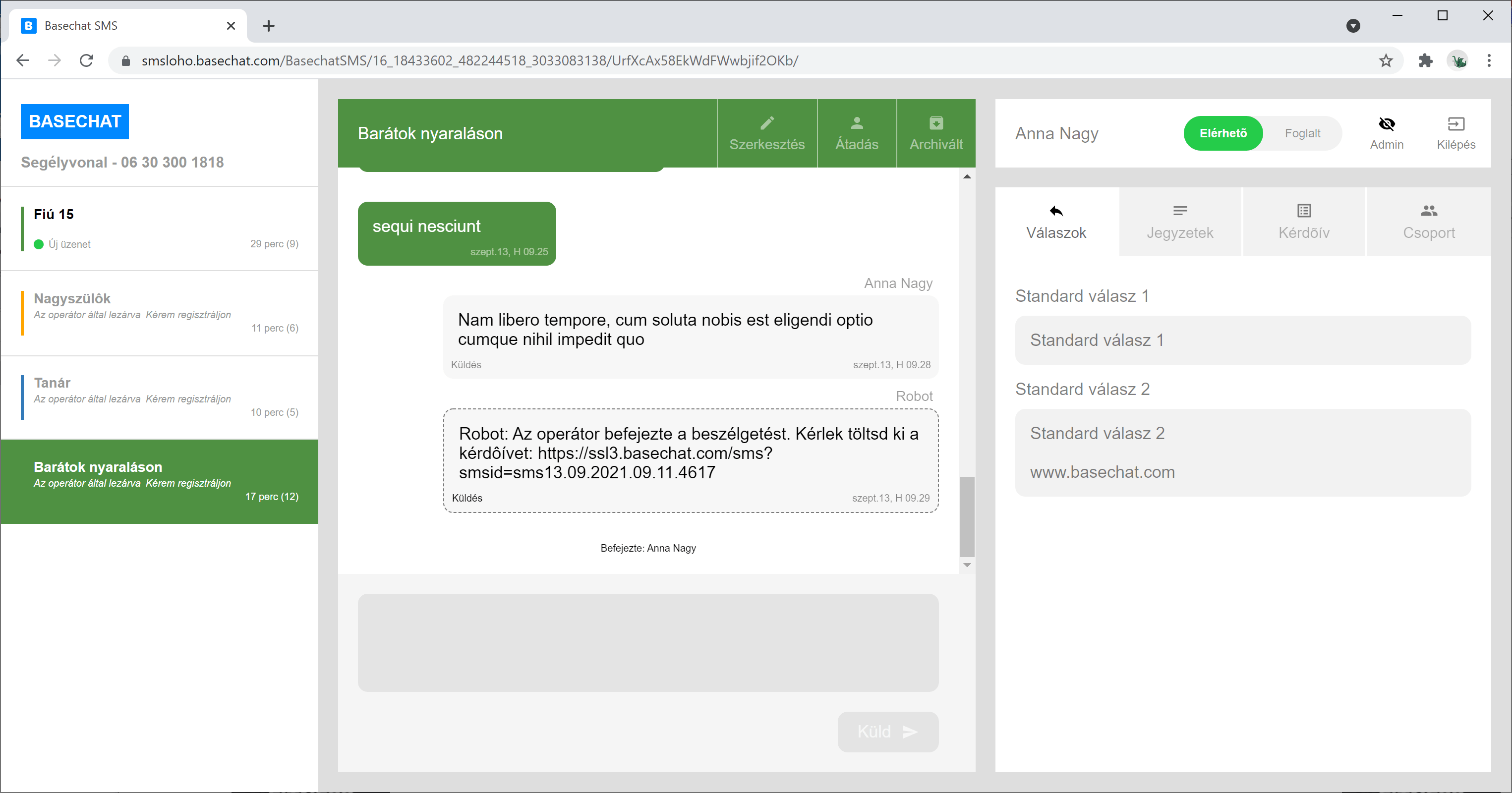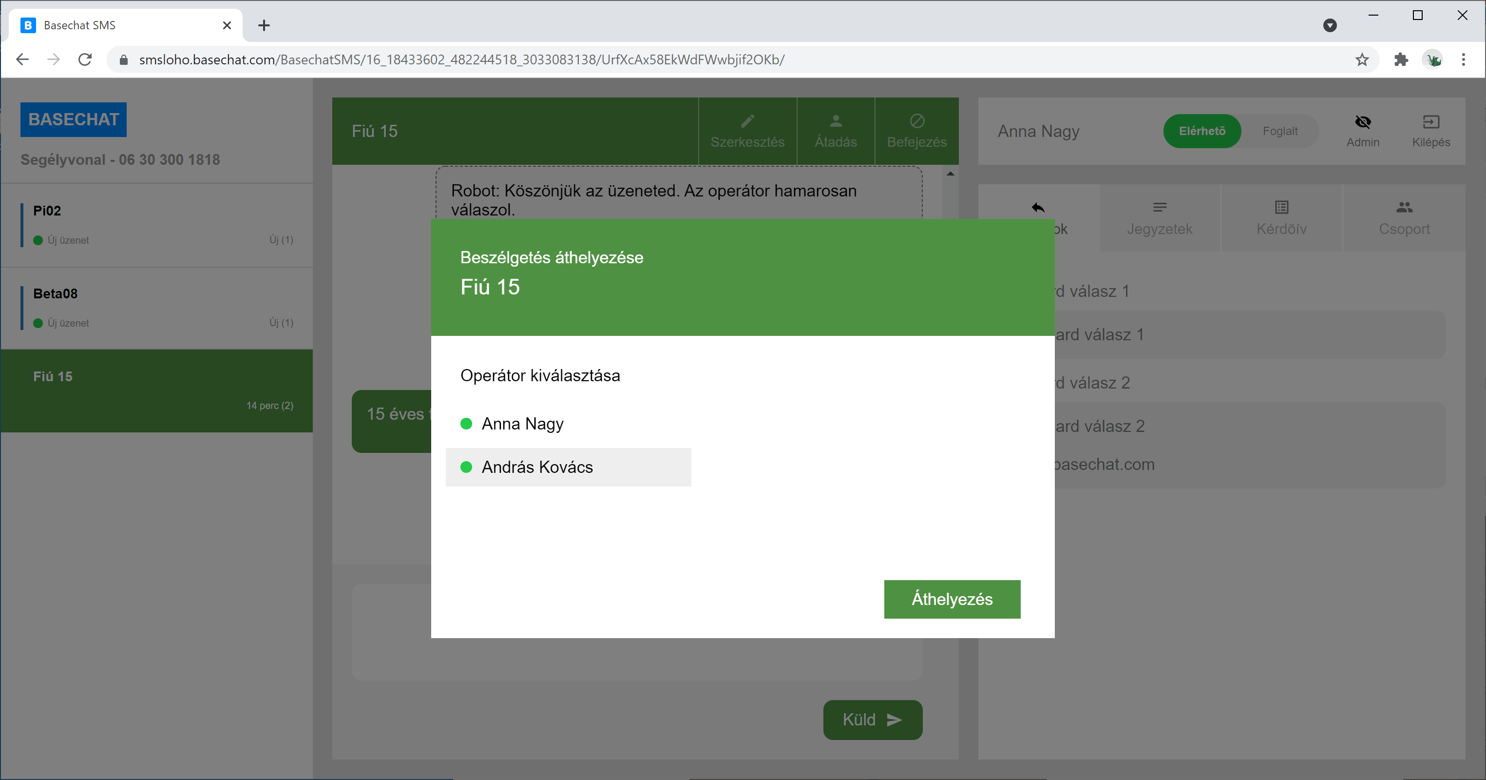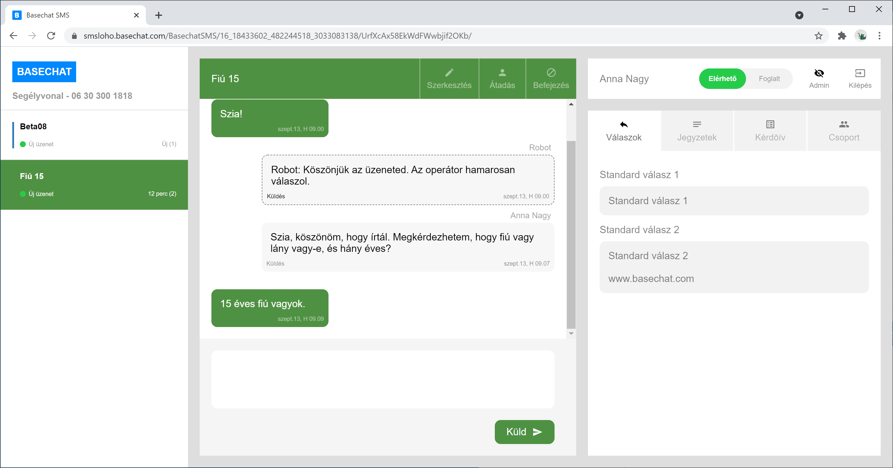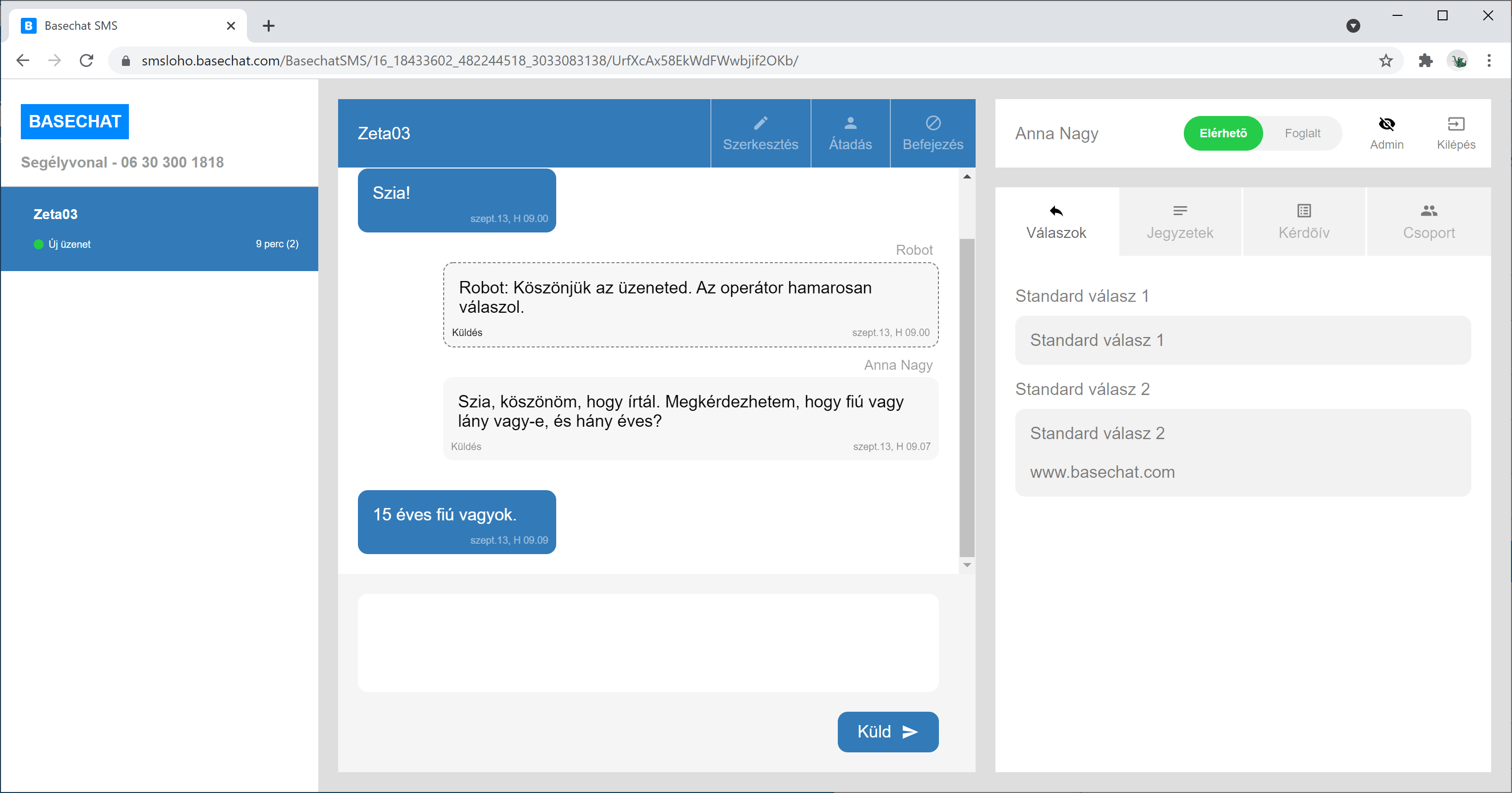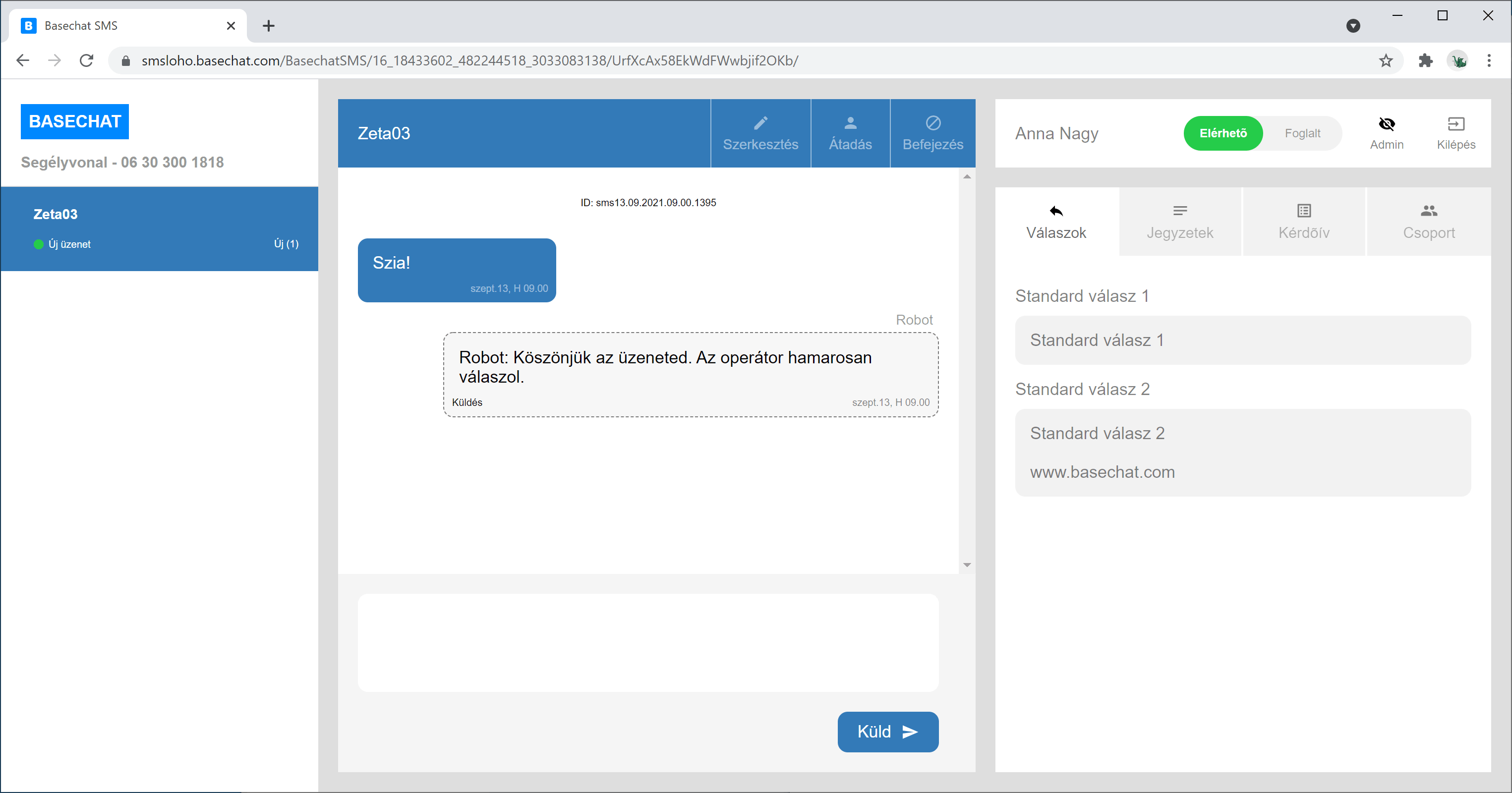 Egy operátor válaszol a Basechat-et használva.