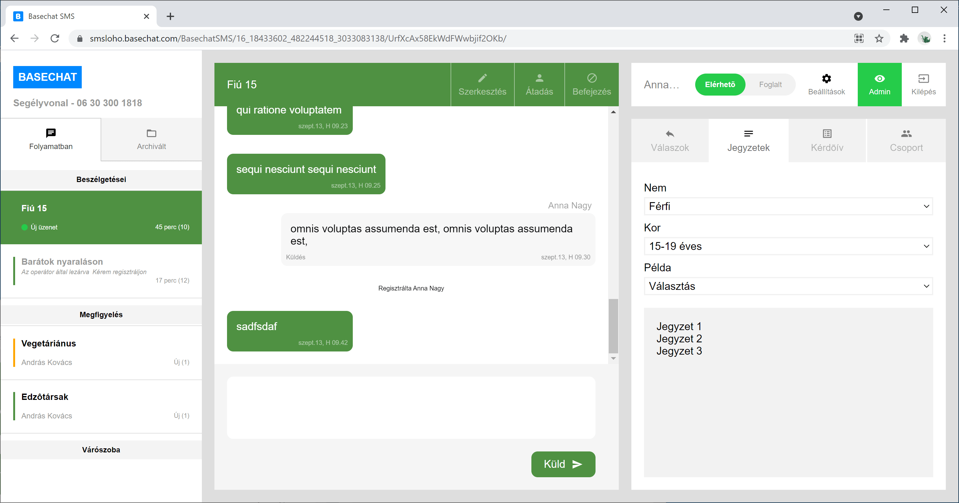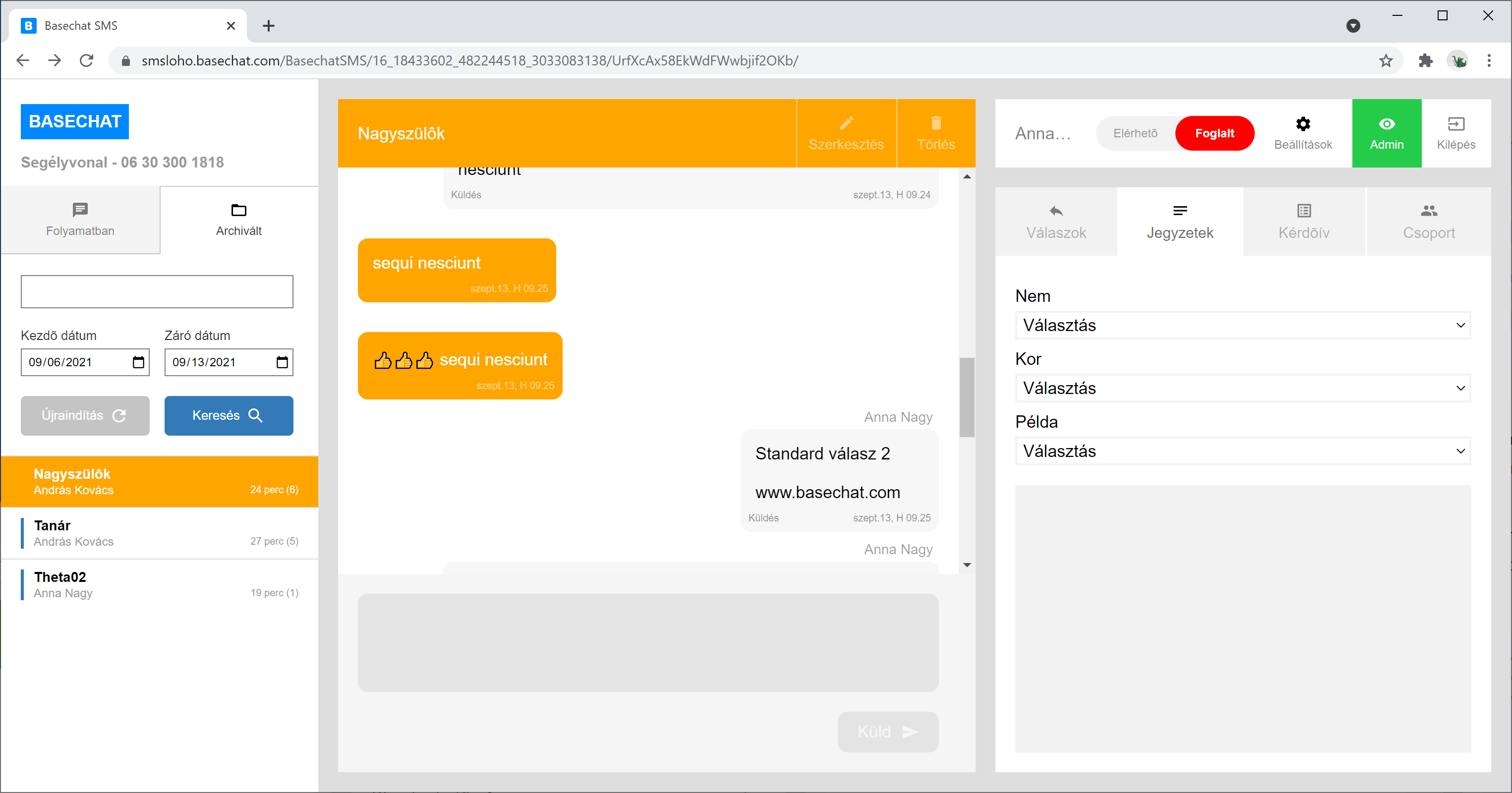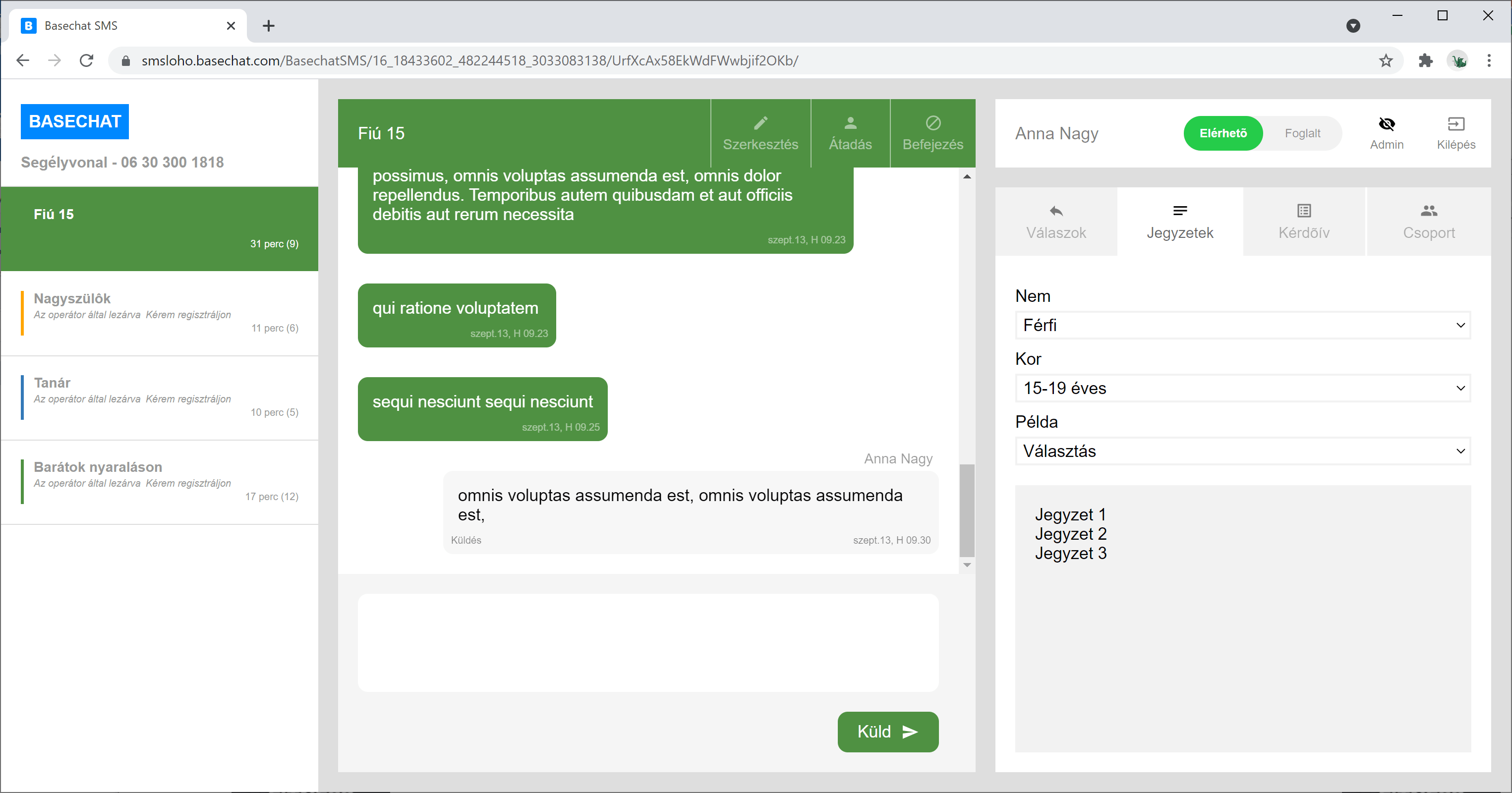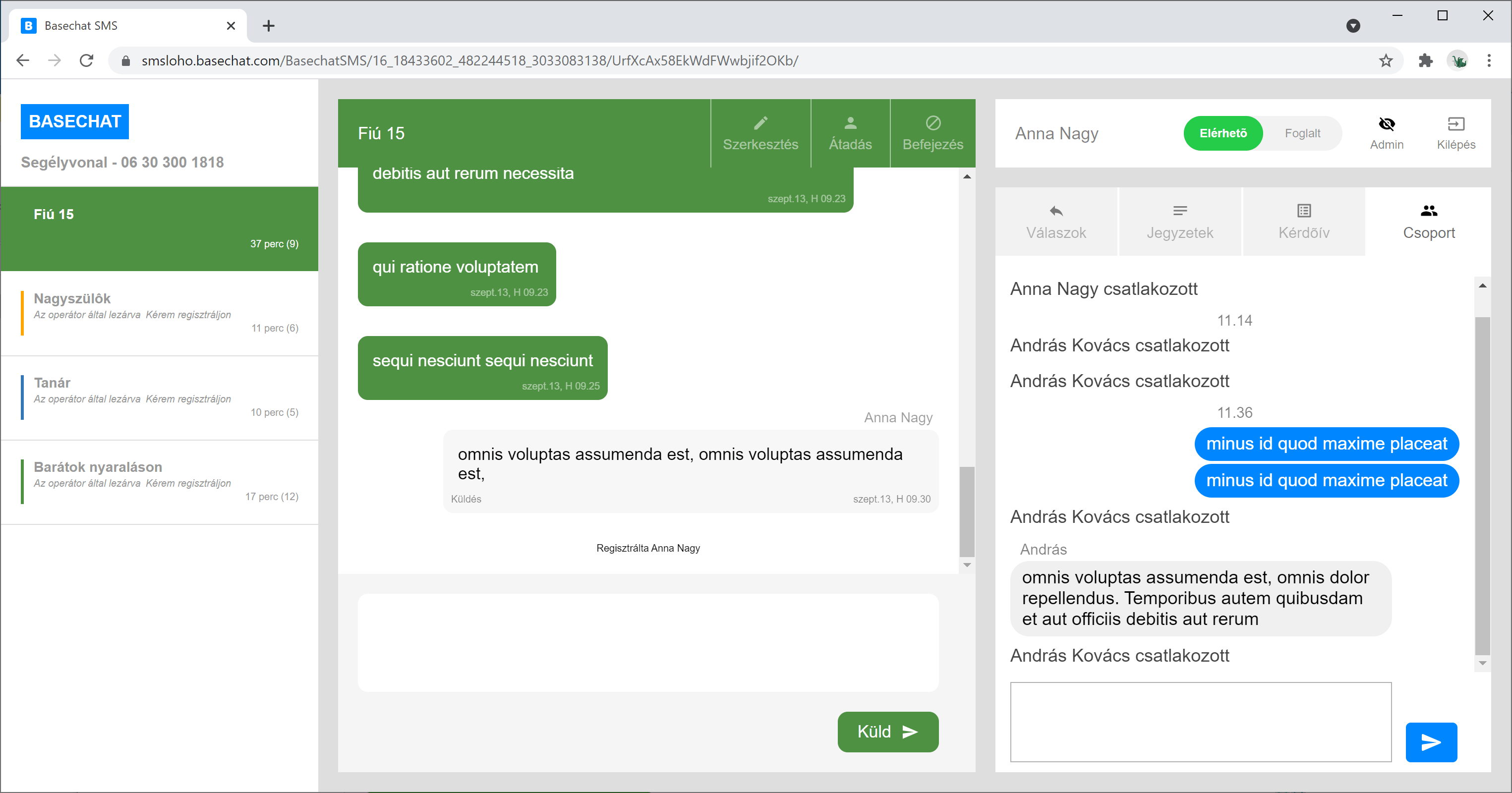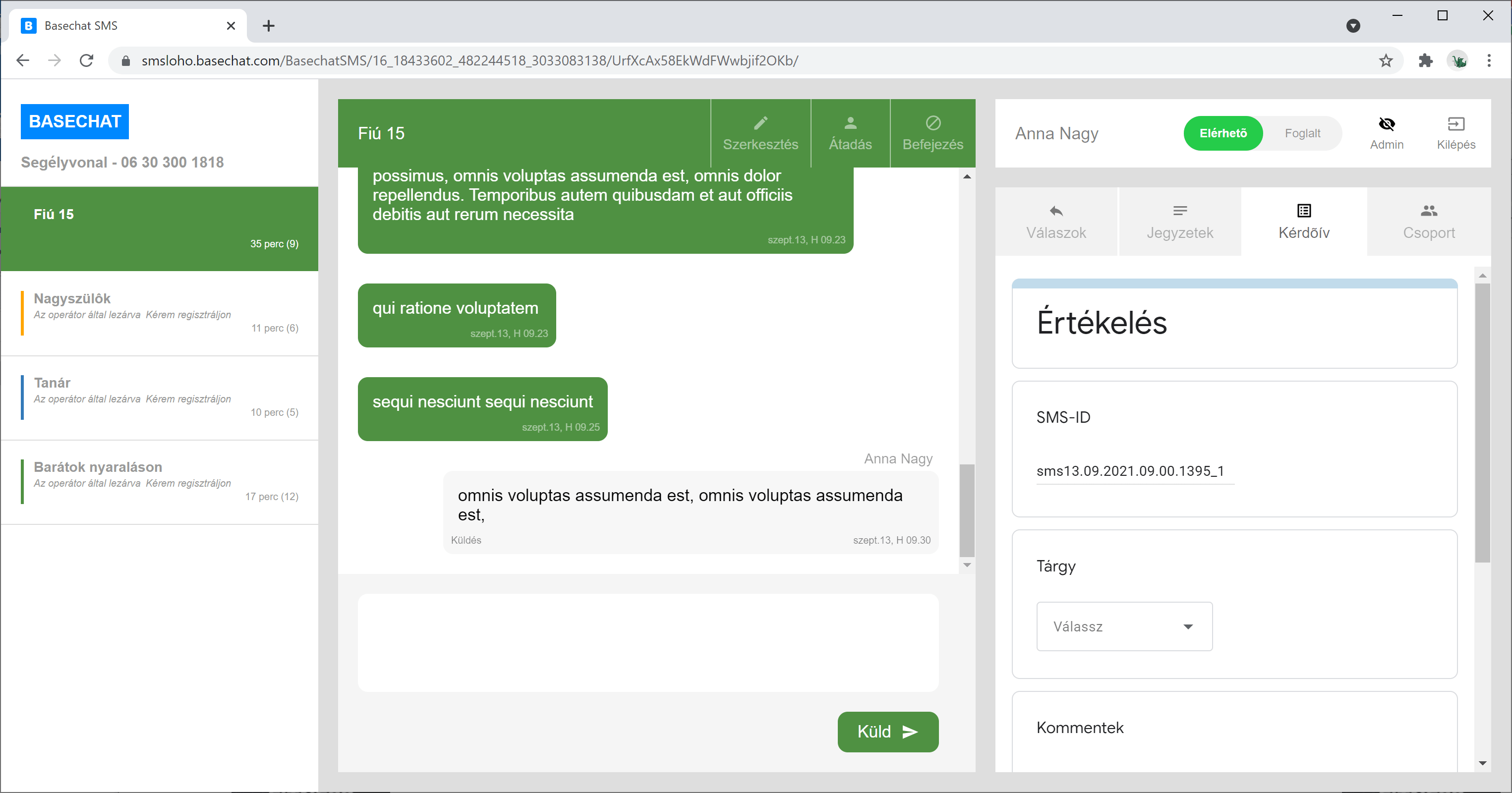 Egy operátor válaszol a Basechat-et használva.