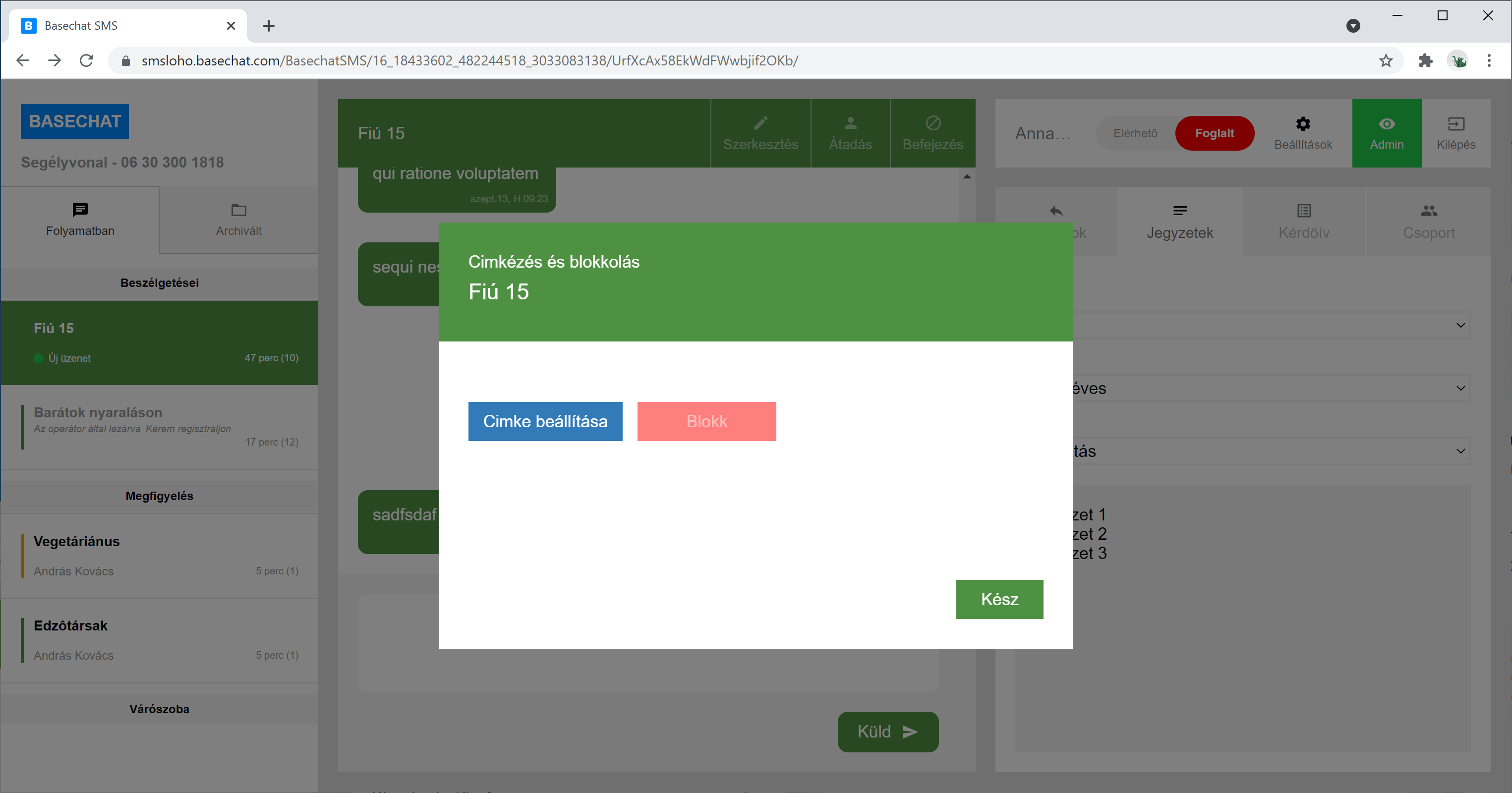 Az adminisztrátor kiválasztja az admin módot és így követheti a folyamatban lévõ beszélgetéseket.