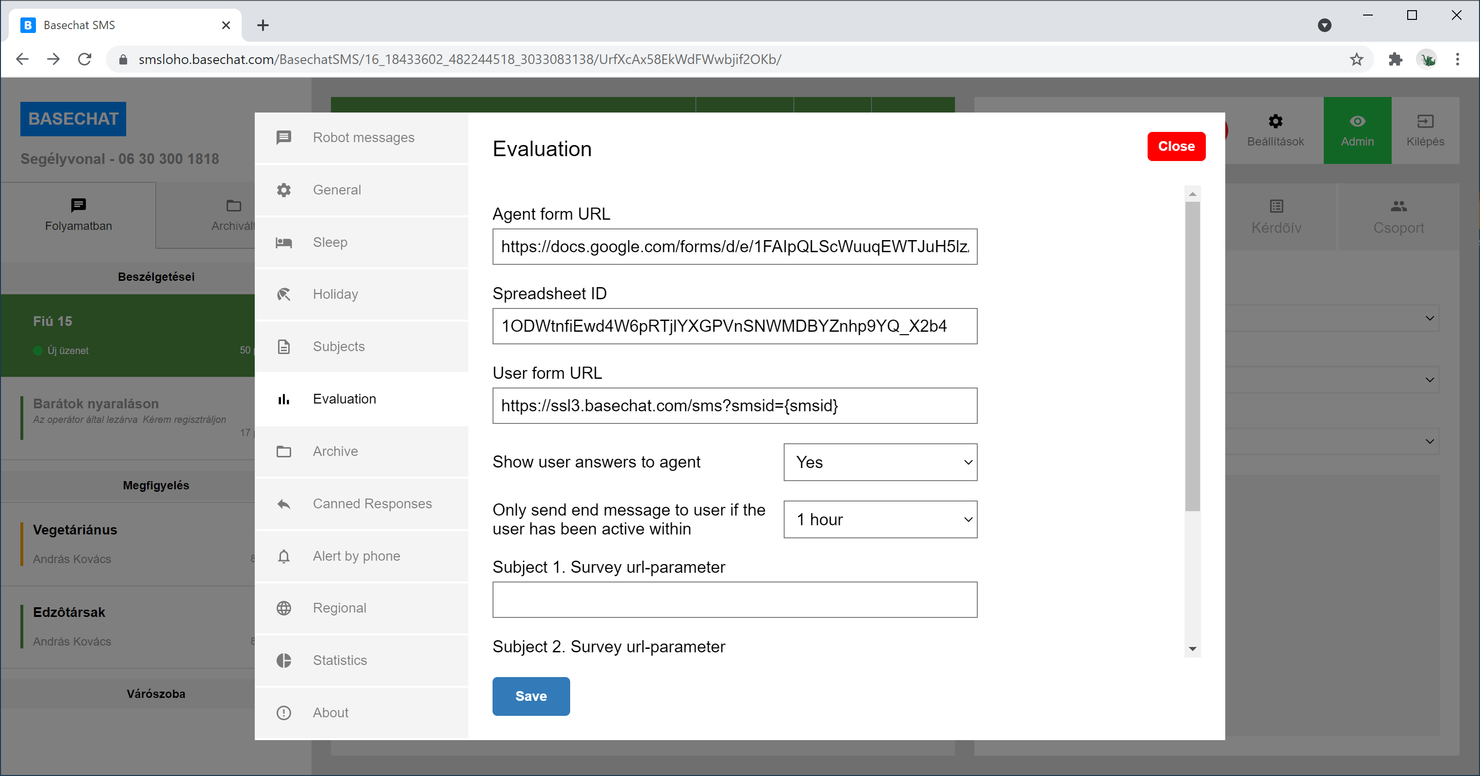 Amikor a beszélgetés befejezõdött, a felhasználó kitölthet egy kérdõívet. A válaszok táblázatban lesznek elmentve, és láthatóak lesznek az operátor számára.