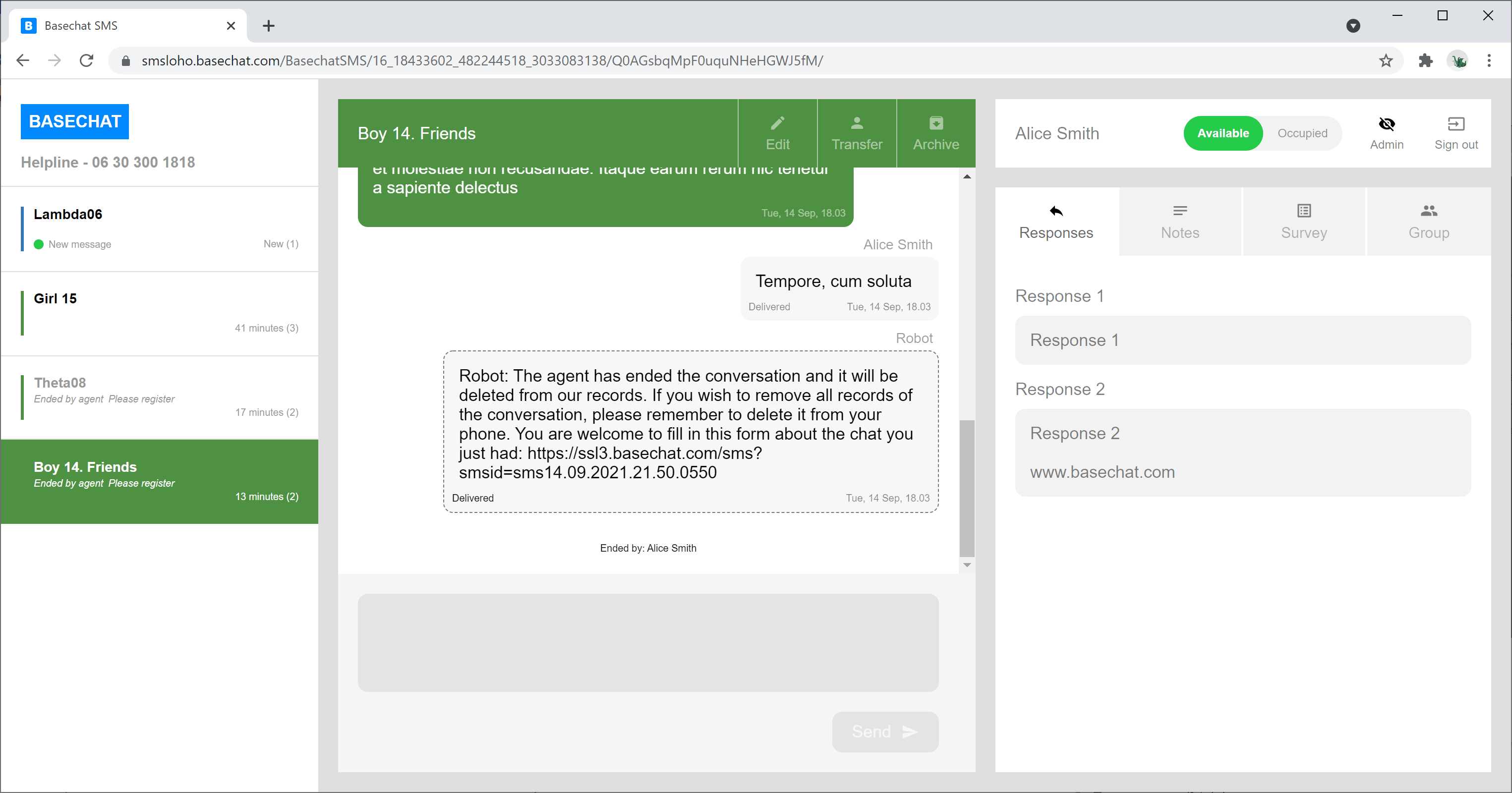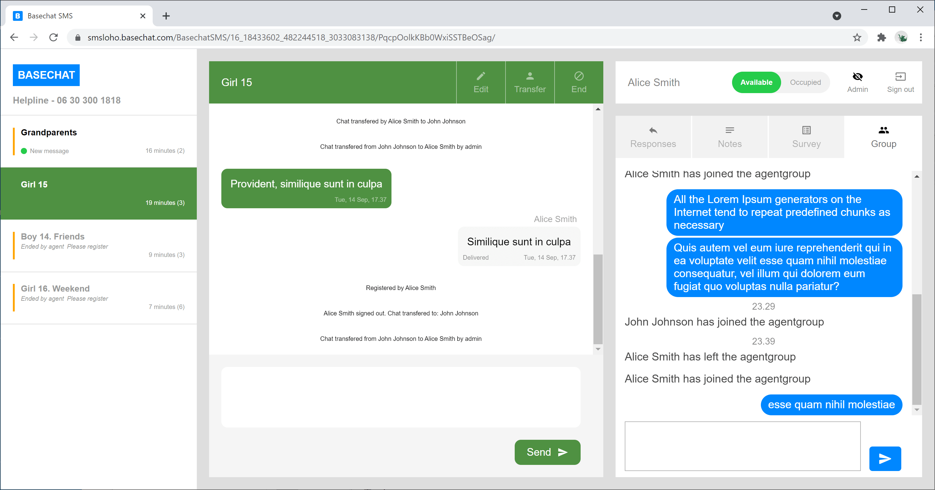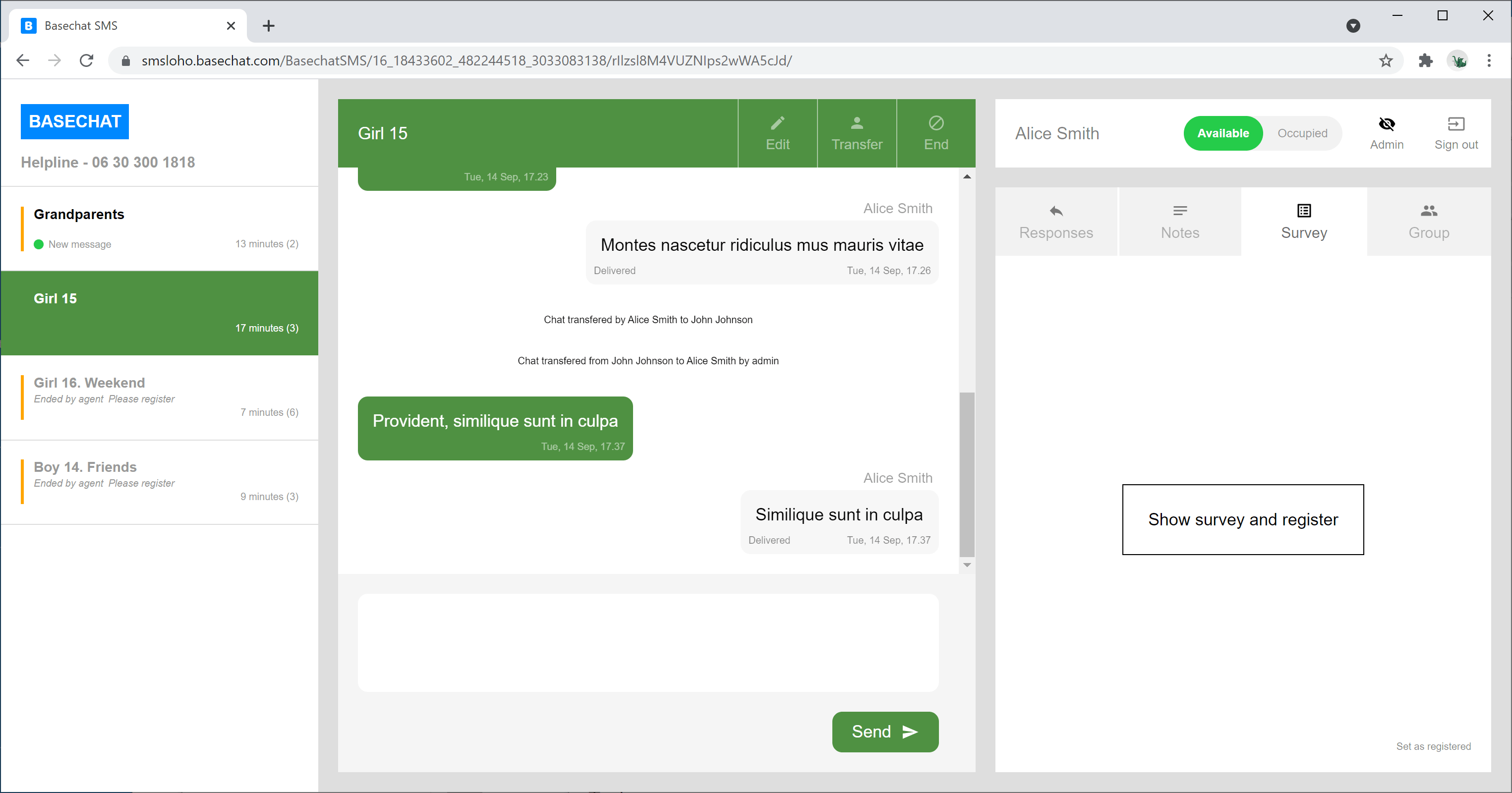 The counsellor can take notes, and label with preset subjects. Notes and subjects are always shown with the conversations when transferred or followed, or when the conversation is ended.