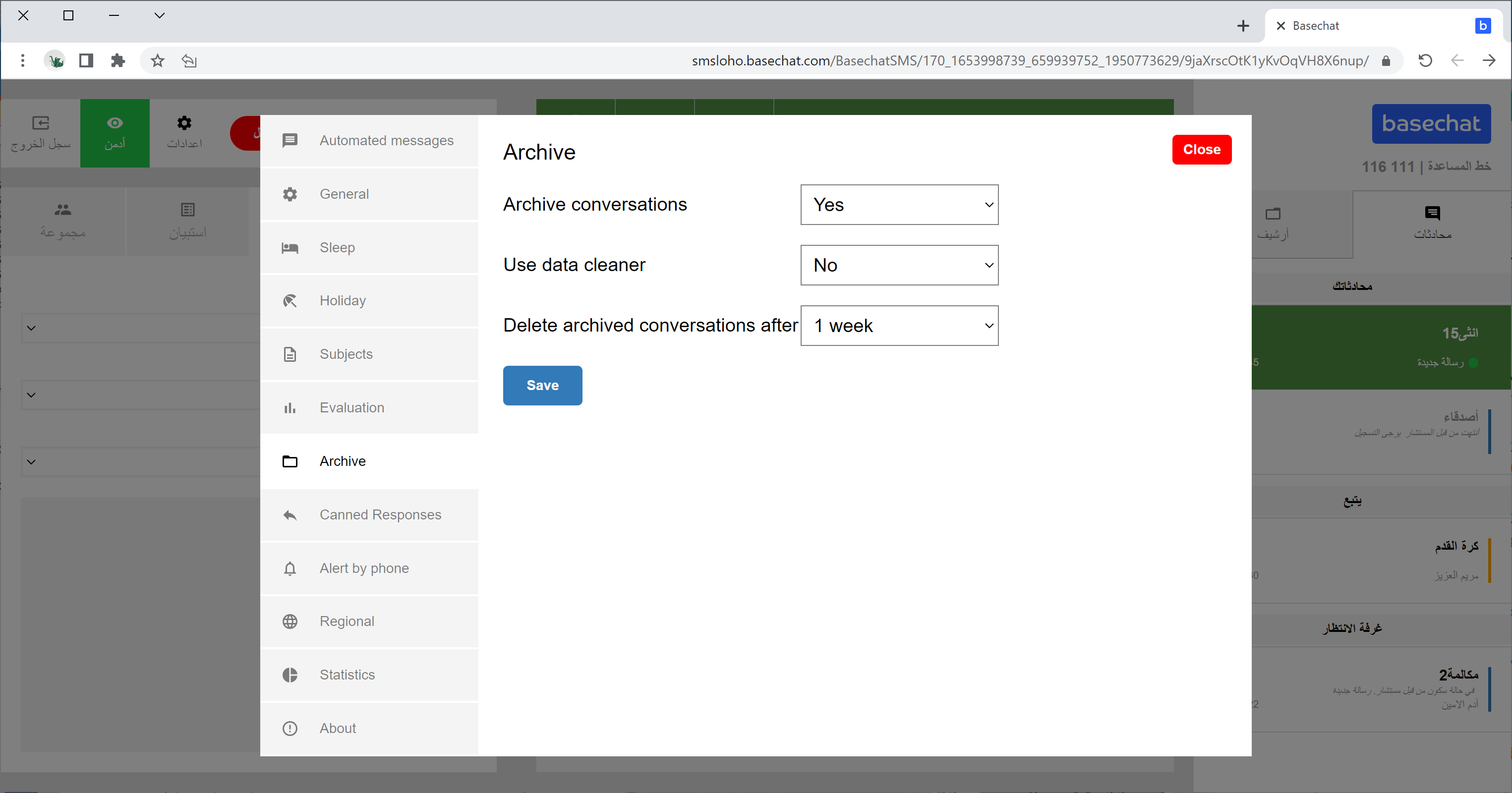 إذا تم تمكين الأرشفة، ممكن للمسؤولين رؤية المكالمات المؤرشفة والبحث فيها.