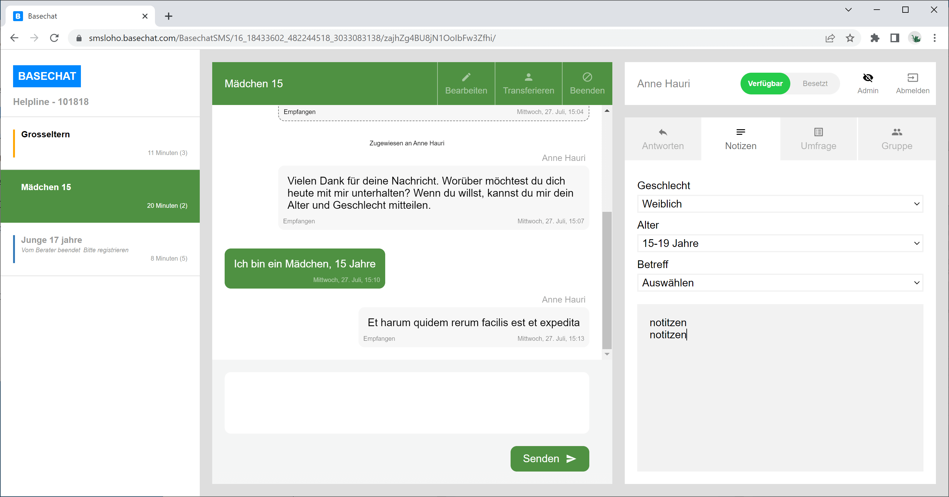 Ein Nutzer kontaktiert die Helpline über SMS, WhatsApp oder einen ähnlichen Kanal.
