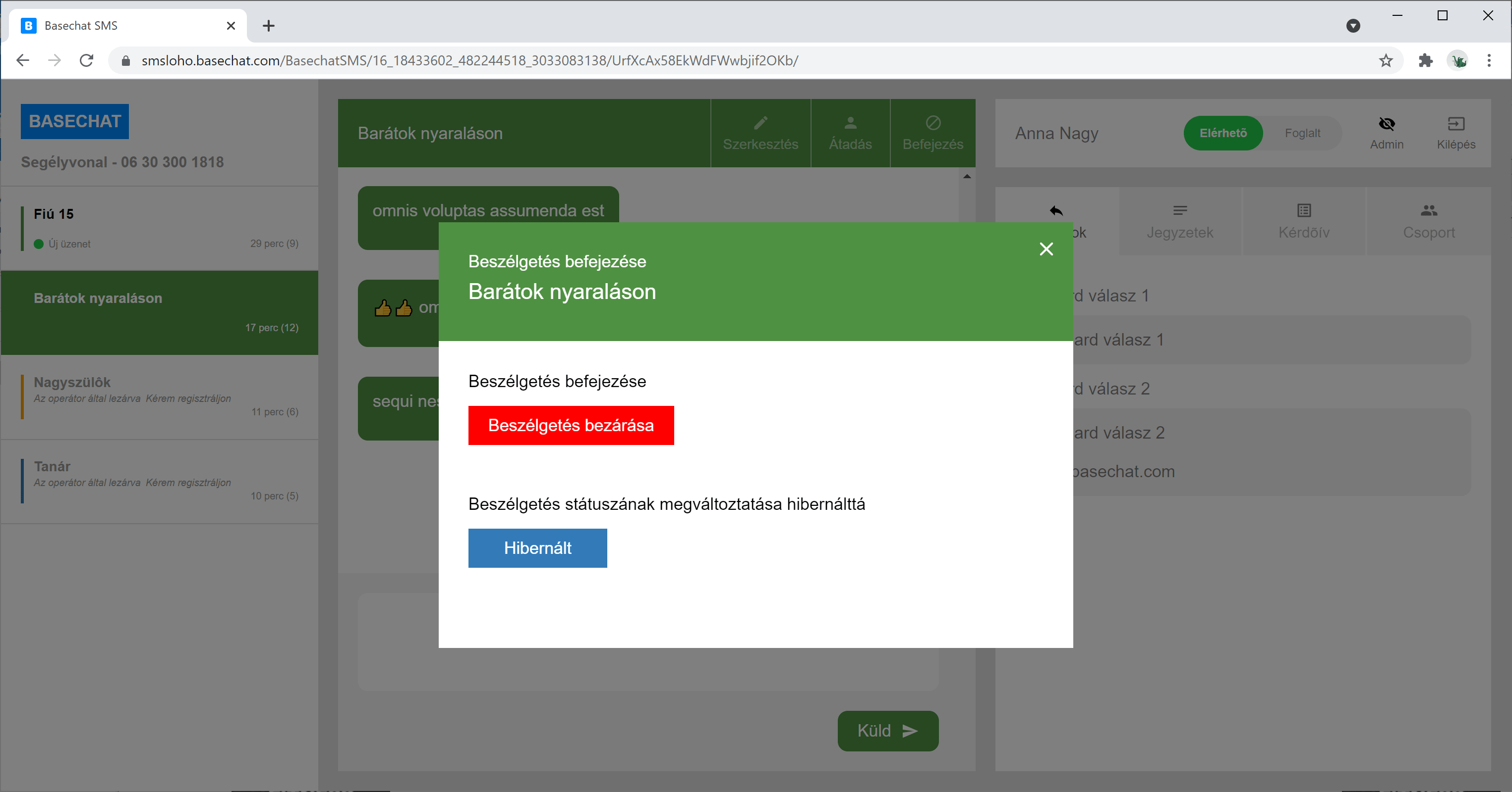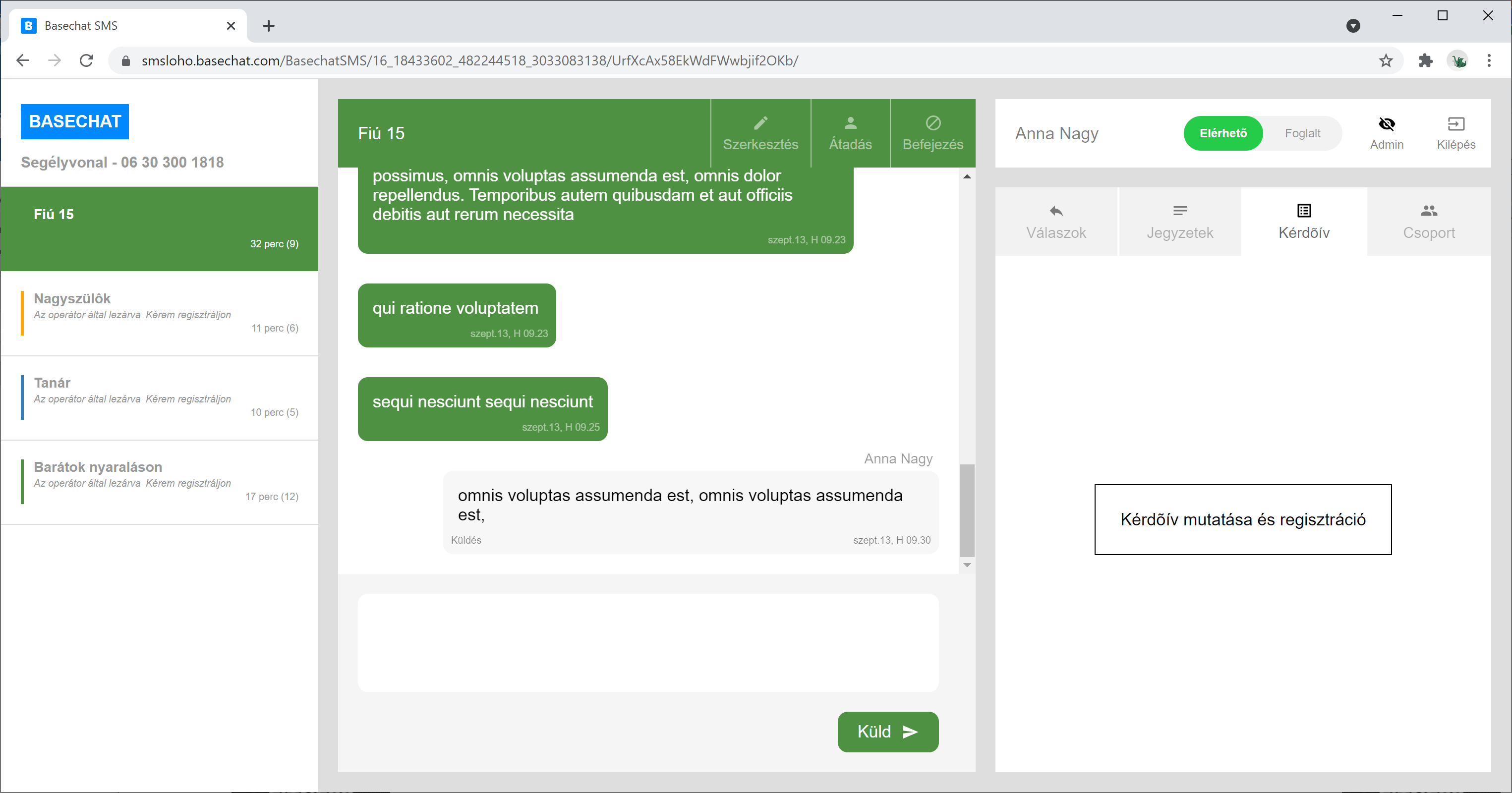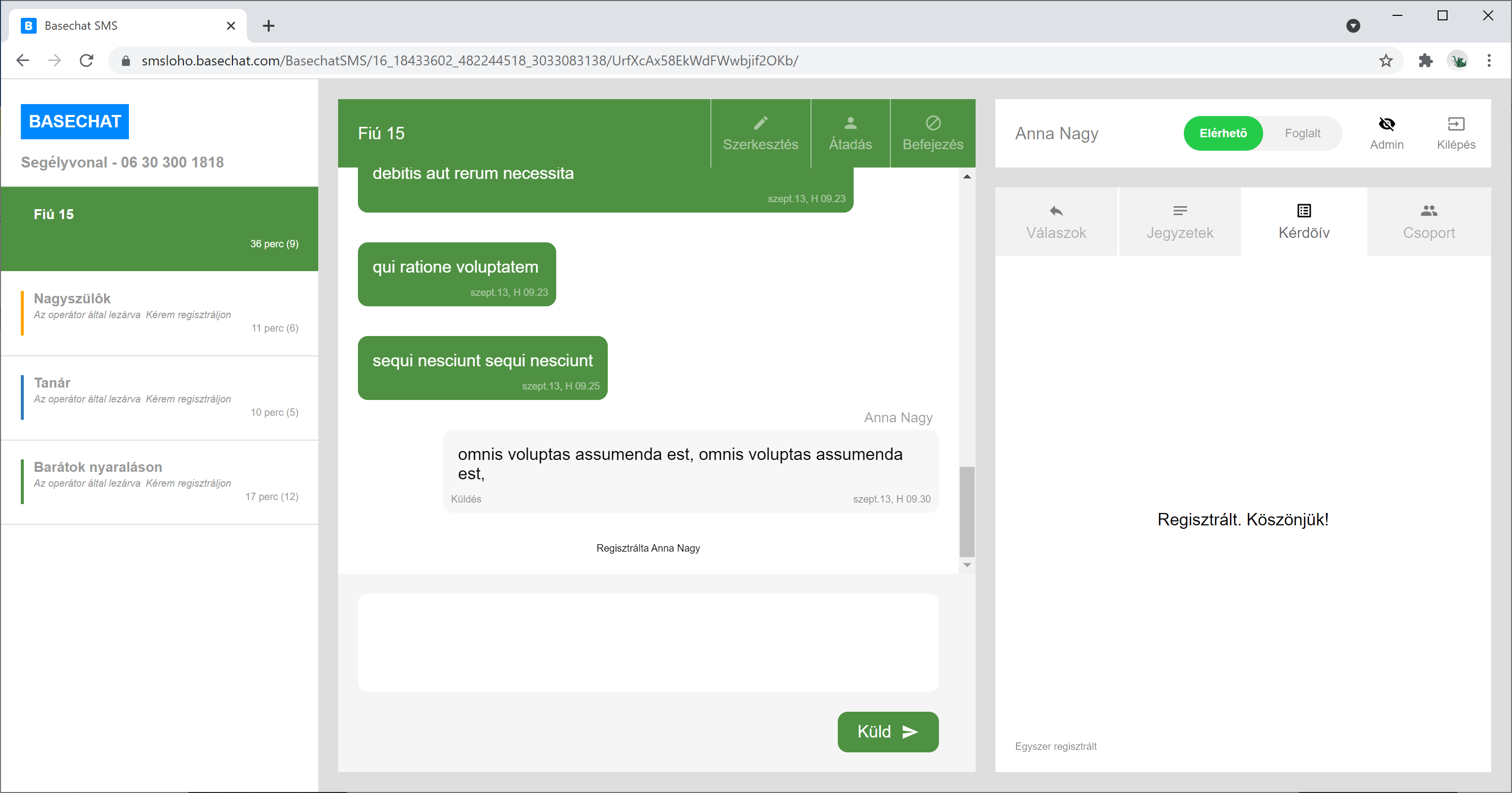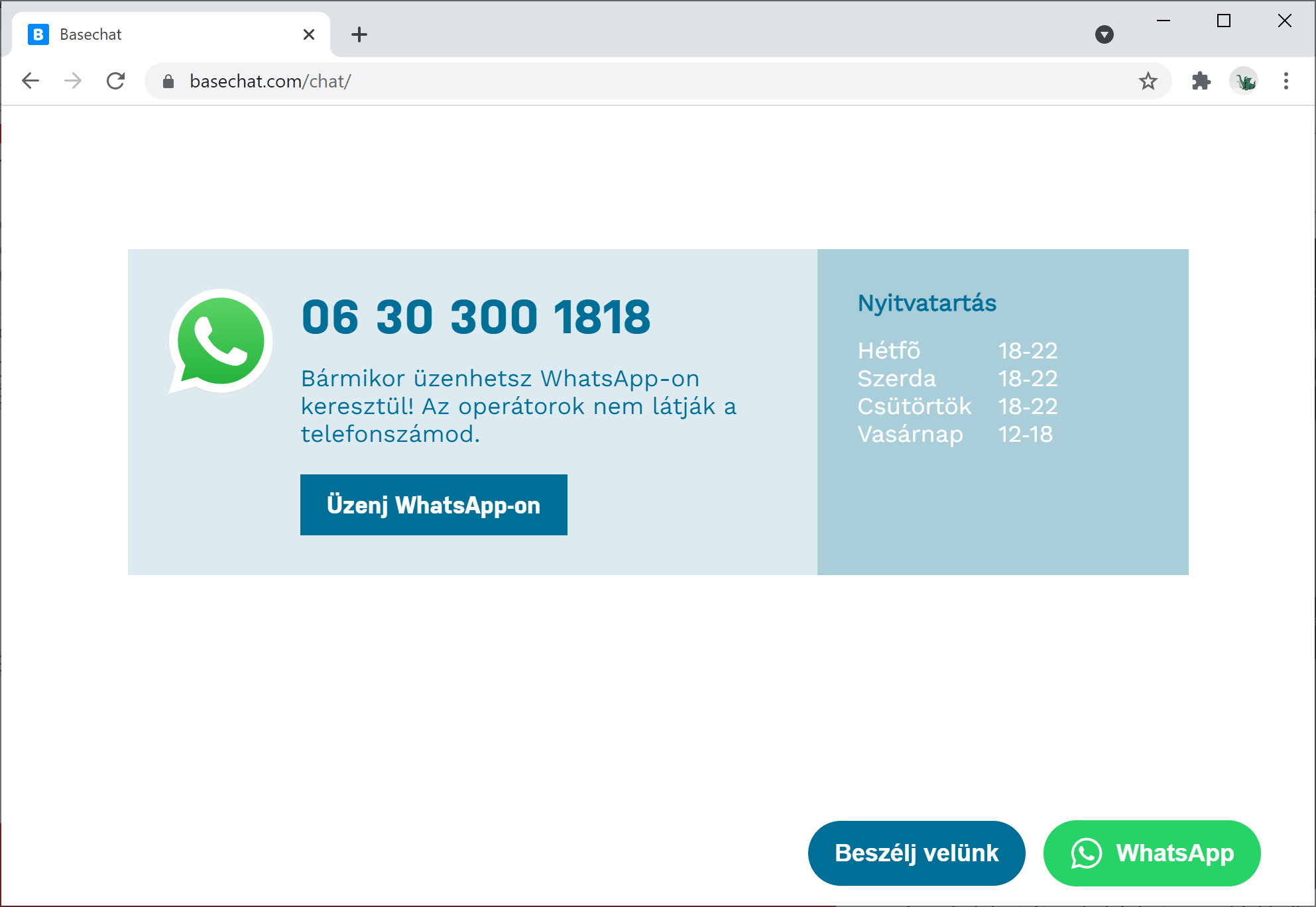 Egy operátor válaszol a Basechat-et használva.