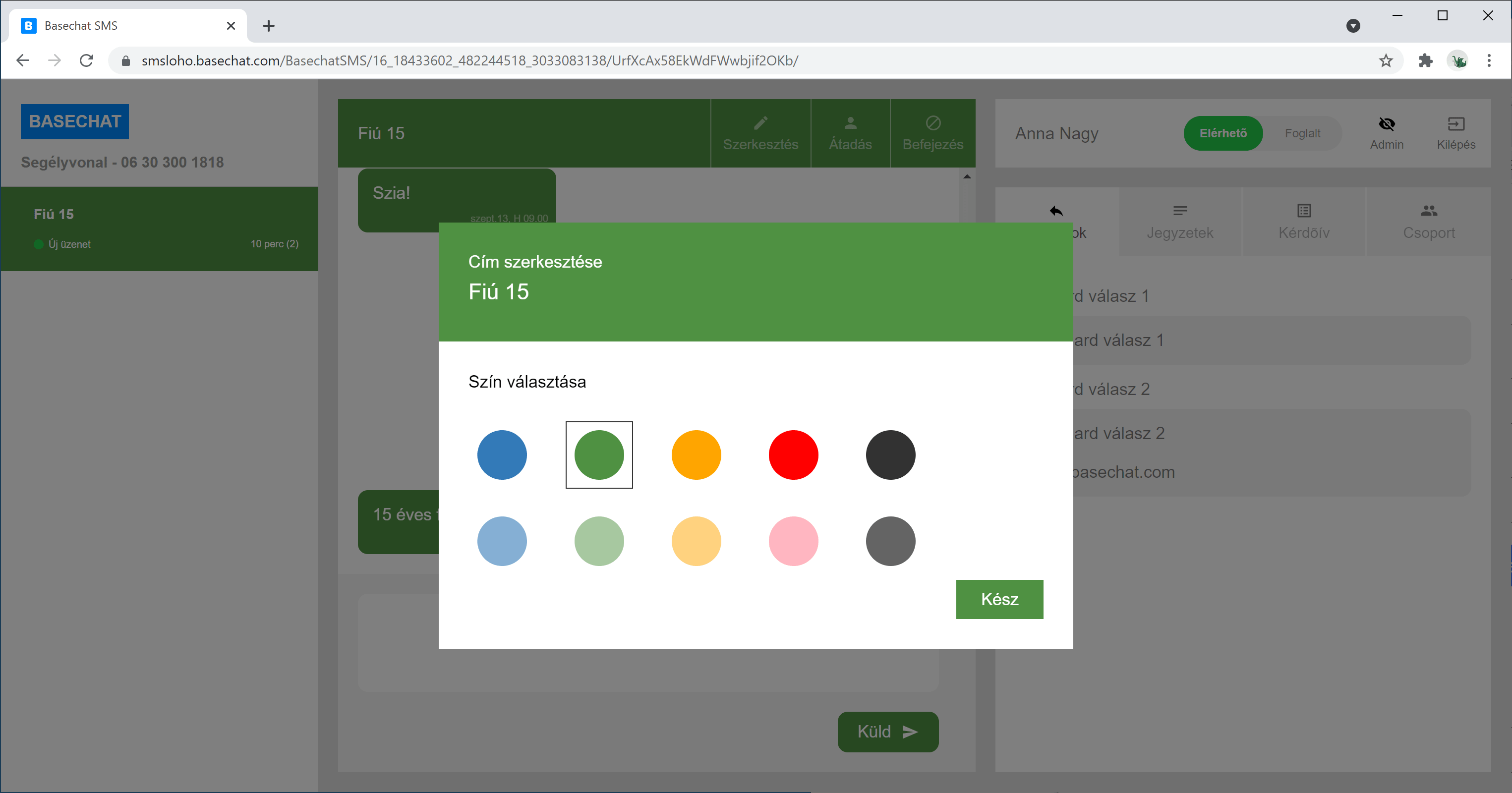 Az operátor címet adhat a beszélgetésnek, és megváltoztathatja a színét.
