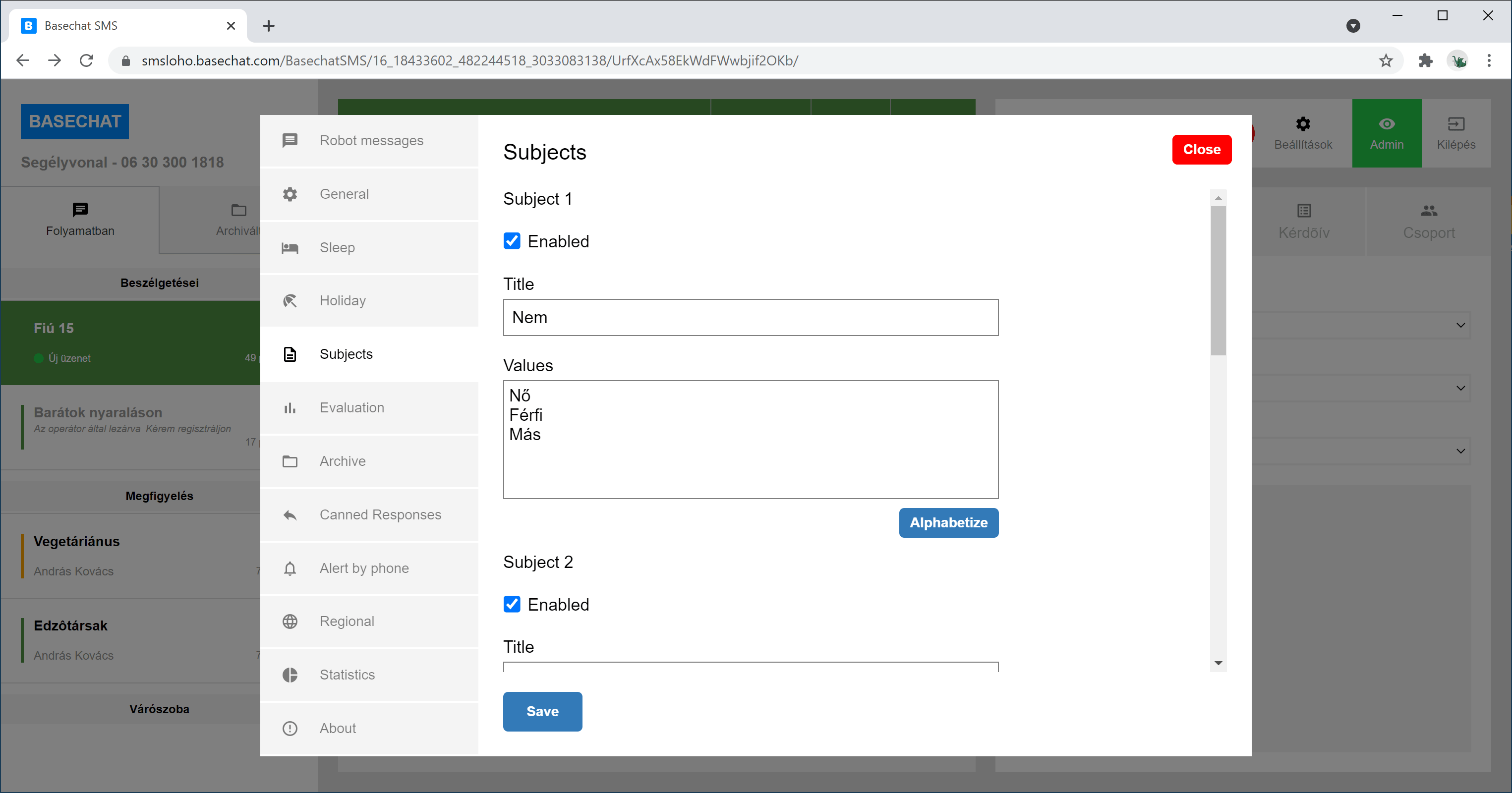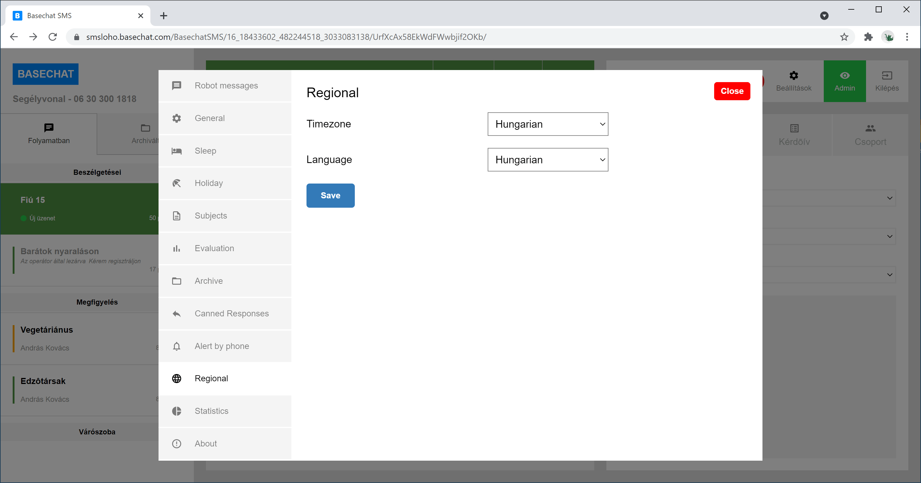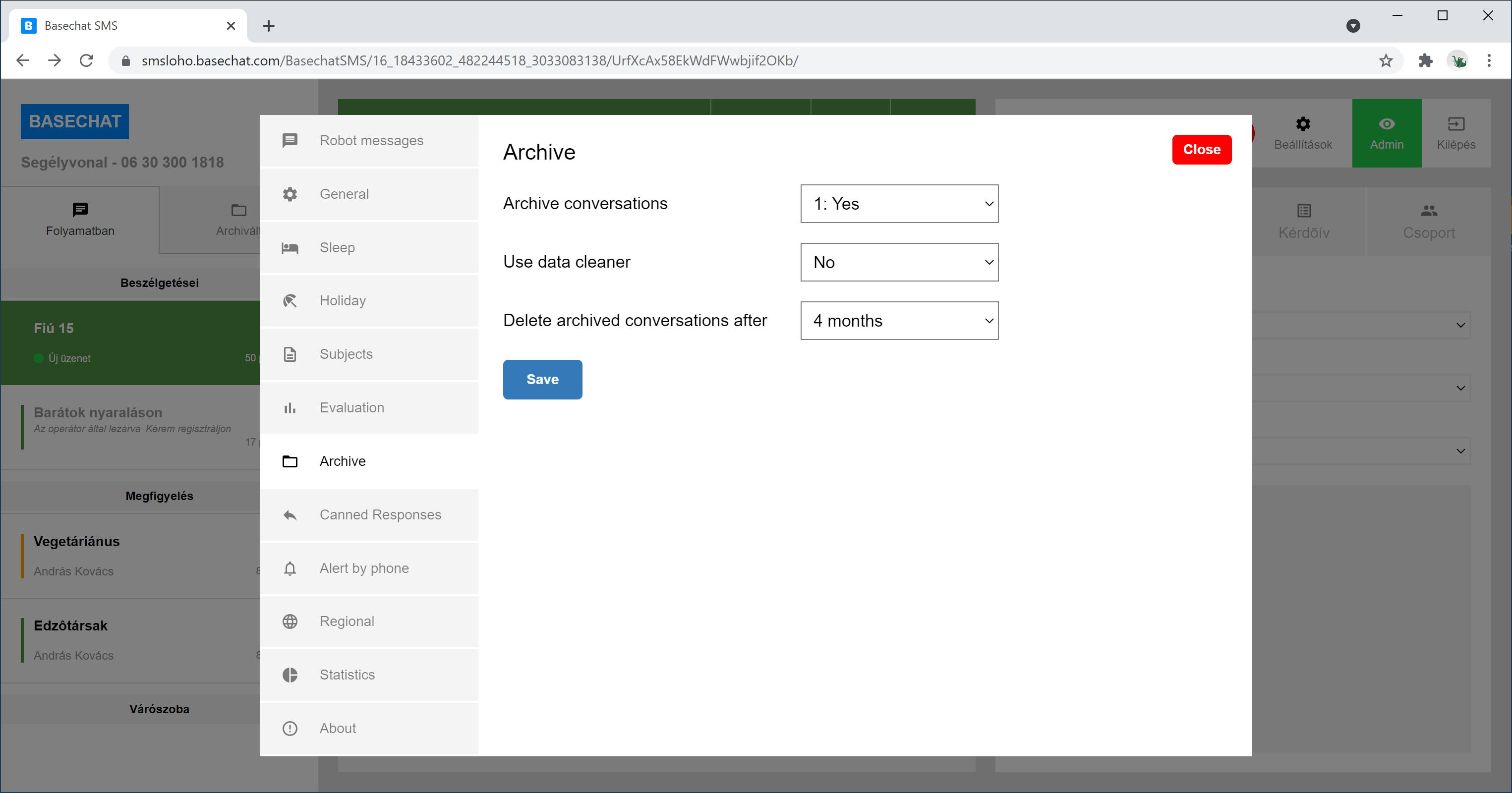 Az adminisztrátor kiválasztja az admin módot és így követheti a folyamatban lévõ beszélgetéseket.